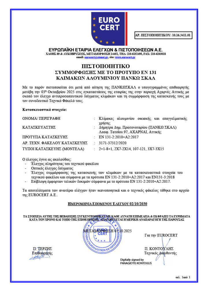 Η πιστοποίηση ΕΝ 131 αποτελεί τη σφραγίδα ότι οι σκάλες μας: